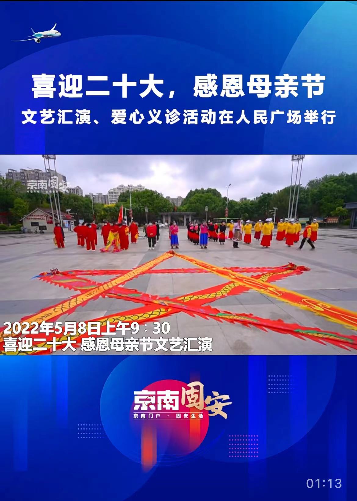 5月8日,和风畅日,草木葱茏。绿意铺满眼眶,像生生不息的希望。母亲节当天,新时代文明实践中心特邀请:广场舞文艺服务队、健康医疗志愿服务队、中央公园志愿服务站点志愿服务队,给一直辛勤付出的母亲们送出了一份特别的礼物——在固安人民广场以文艺汇演,并携手神元堂中医馆与九树源生活美学空间特别为参与活动的朋友们进行了健康义诊,感恩母亲奉茶活动,让参加活动的朋友们过了一个感人难忘的母亲节。