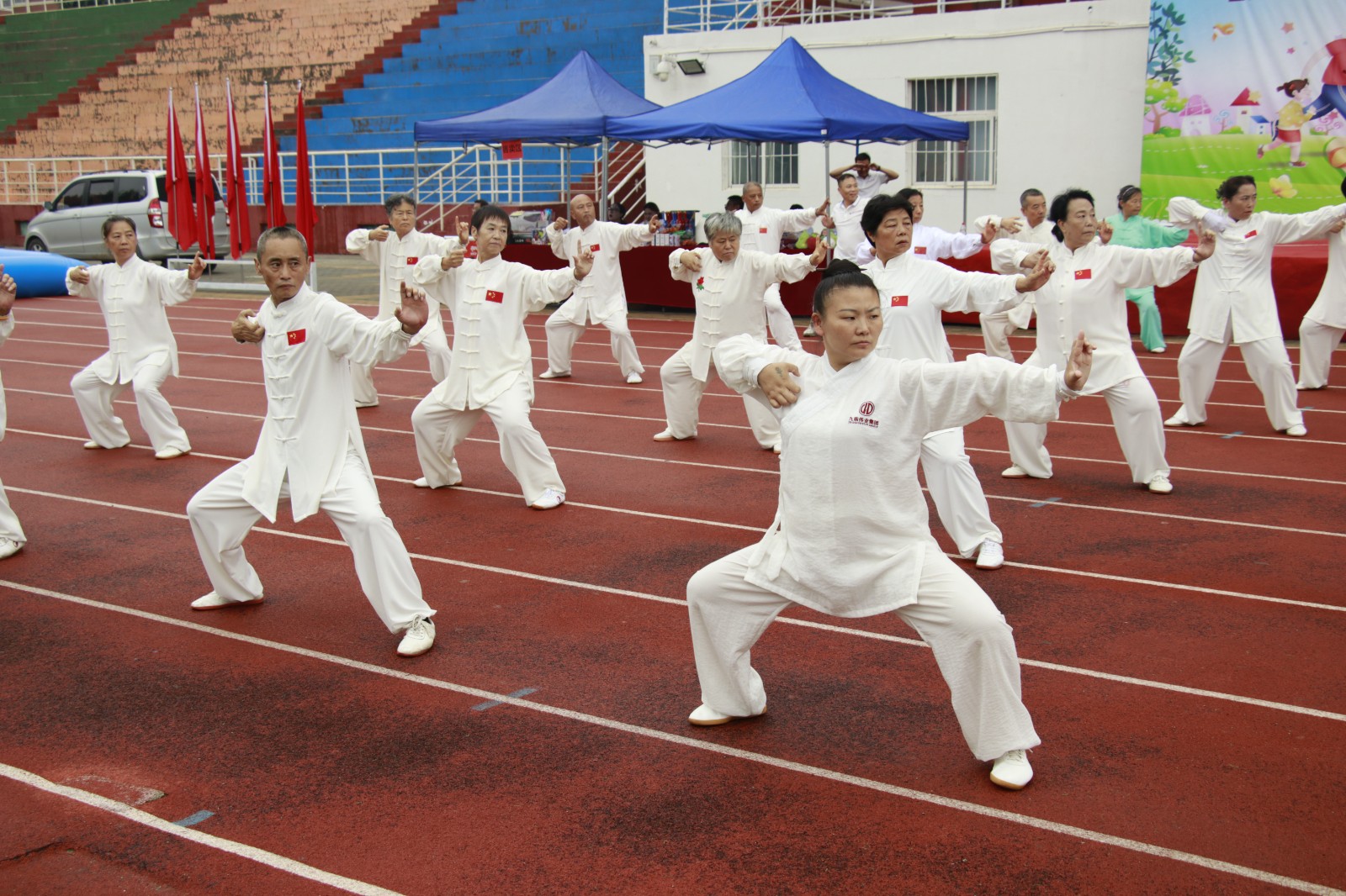 固安县社工部副部长李青梅、金鼎物业常务副总经理杨晓杰、固安县家庭教育协会党支部书记董素君、固安人民公园太极队李艳芳队长及广大太极爱好者、金鼎物业各项目业主家庭共同参与活动。